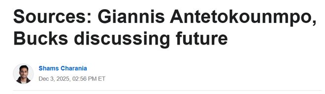 北京时间12月4日,据名记Shams报道,字母哥与其经纪人萨拉齐斯正就这位两届NBA常规赛MVP的未来与密尔沃基雄鹿队展开磋商,探讨他留队或是转投其他球队才是最佳归宿。消息人士称,这些谈判预计将在未来几周内得出结果,其最终走向将决定字母哥是否会在2月6日的交易截止日前进入可交易名单。