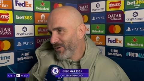 率队在欧冠联赛阶段第5轮3-0击败巴萨后,切尔西主教练马雷斯卡接受了亚马逊Prime的采访。
